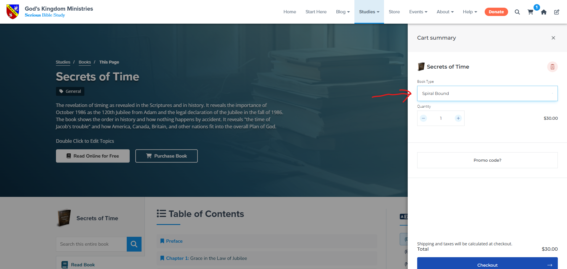 To change between spiral bound or perfect bound, add the product to your cart, and then notice this dropdown menu